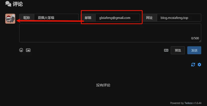 提交后,在各大Twikoo评论区填入邮箱之后,不出意外的应该就能够显示出自己的头像了