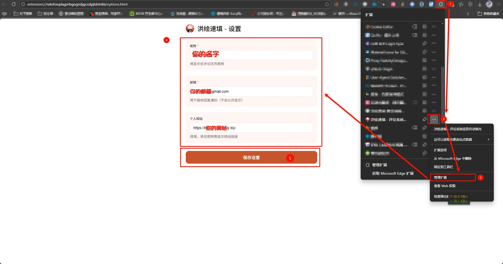 之前逛网站的时候发现有个叫洪绘速填的浏览器插件可以快速自动填写免登录评论系统信息